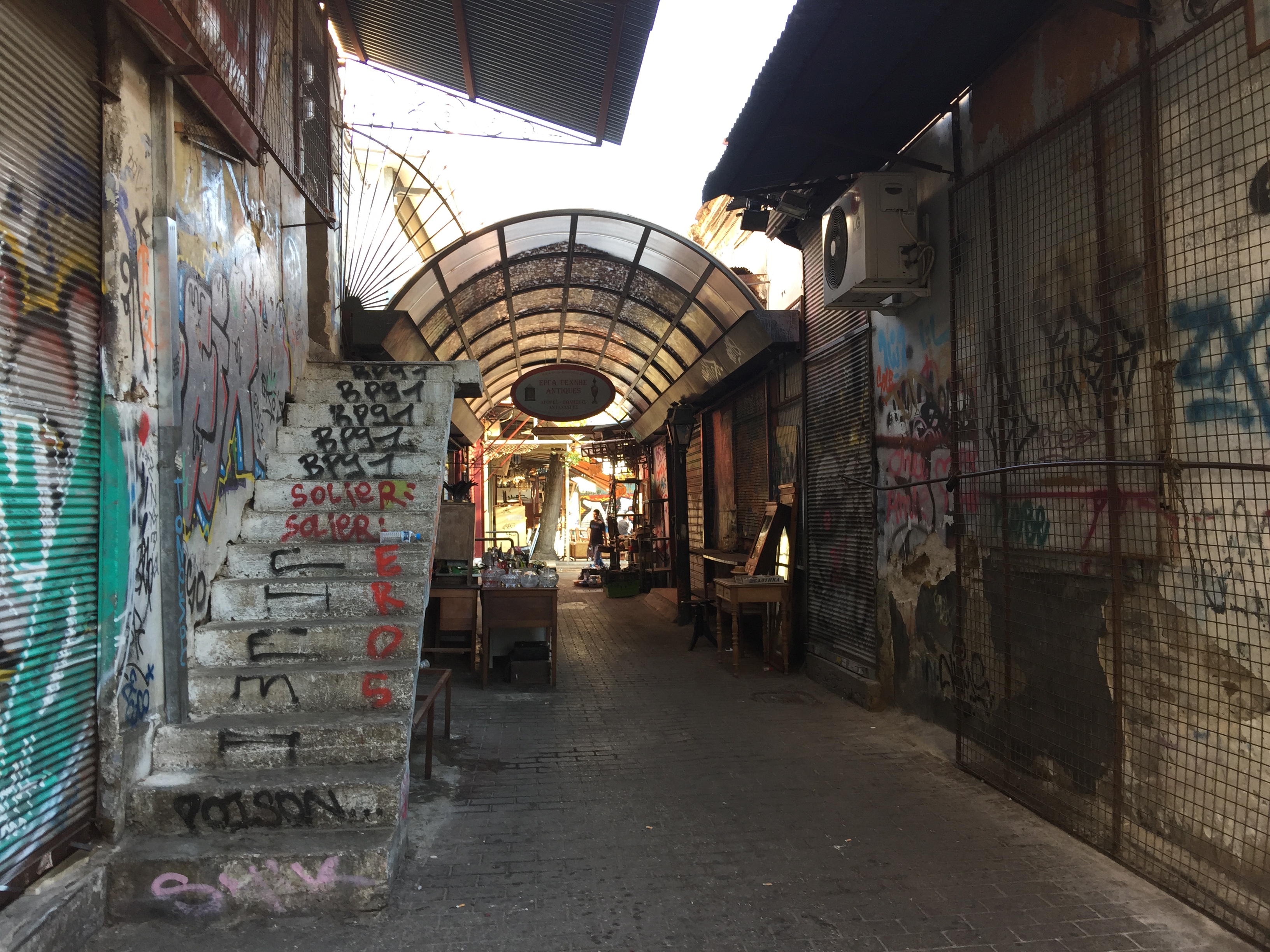 The difference is that the police in Athens don’t bother graffiti artists, or that’s what we were told anyway. So the prevalence of graffiti everywhere is no reflection on the safety of the city.  I went on an organized walk with a graffiti artist with the tag RTM, who took us around the Monastiraki area of Athens looking at the street art.